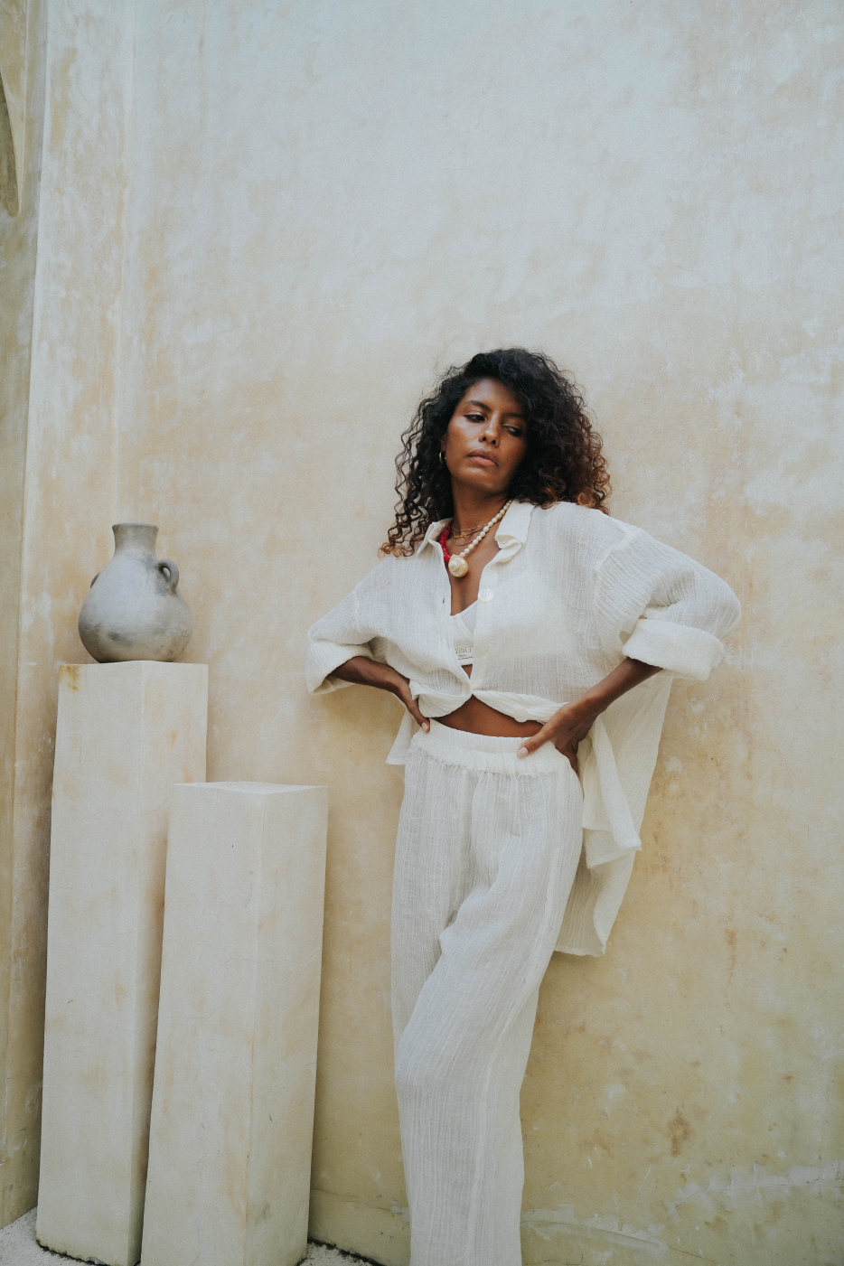 The La Mer Shirt is a contemporary take on the classic long shirt, designed for a modern unisex loose fit with buttons and long sleeves. Pair it with La Mer long pants for a coordinated look or wear it as an outer layer over a bikini or intimates.
