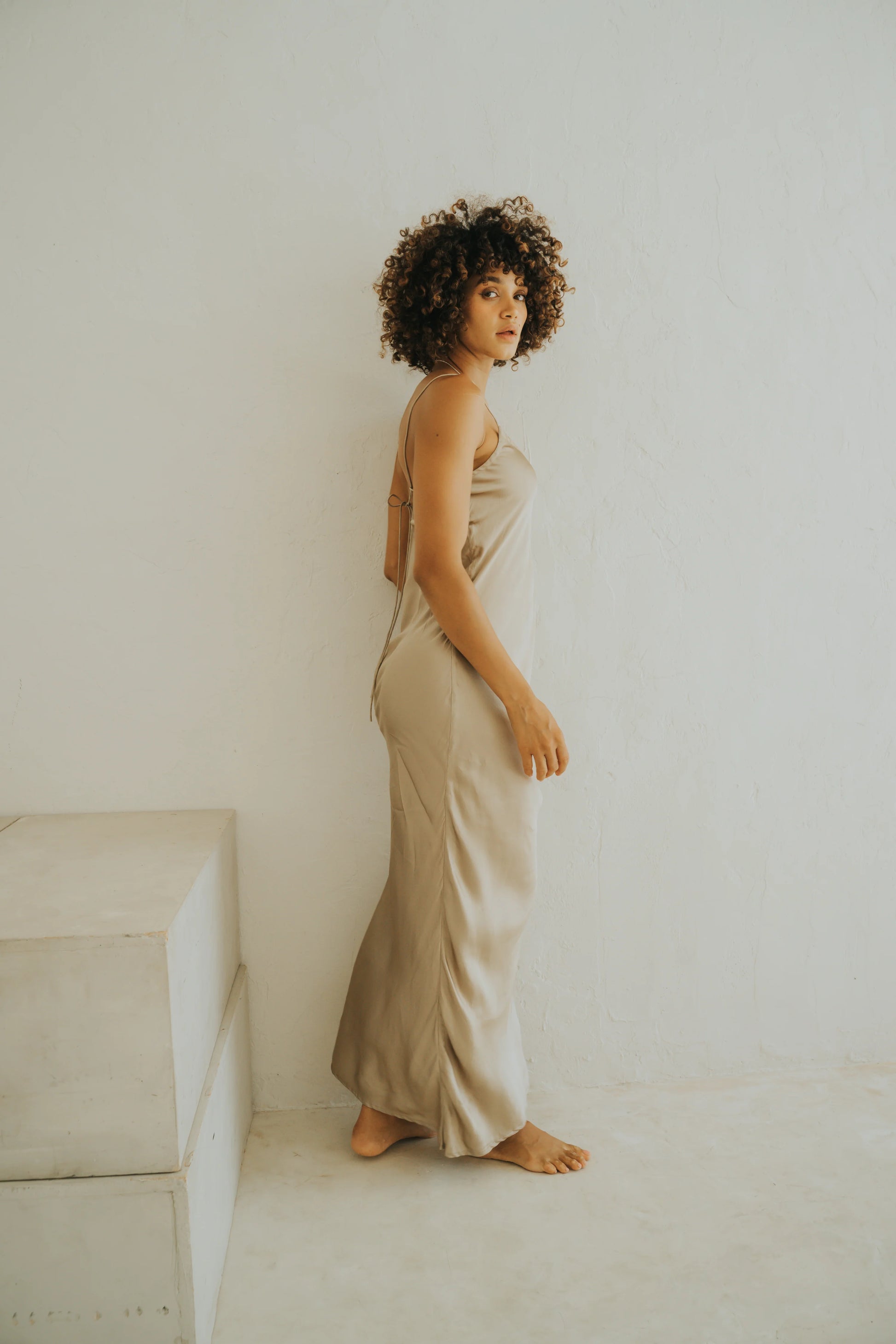 SHIBUI Concepts - Faye Silk Maxi Slip Dress Cool Tan